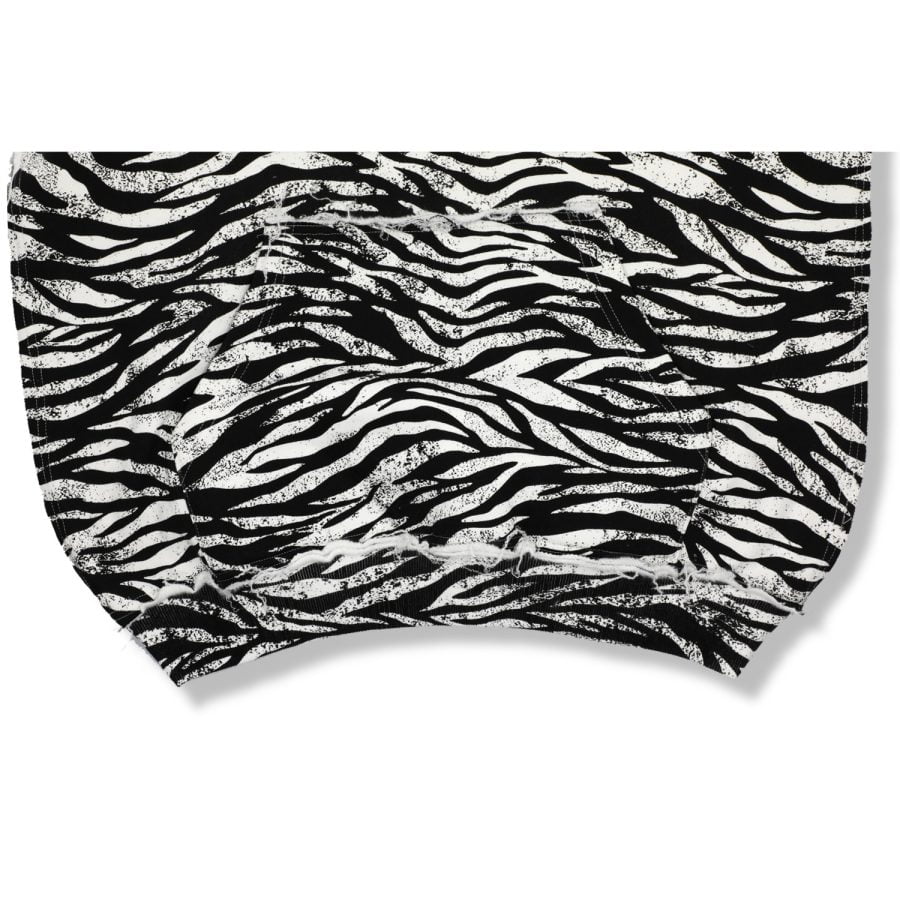 This is an all-over print body with an original Zebra-based design pattern applied to the hood, sleeves, and hem ribs. This original product is made of thick fabric and the finishing stitches are sewn inside out, leaving the seams outside.